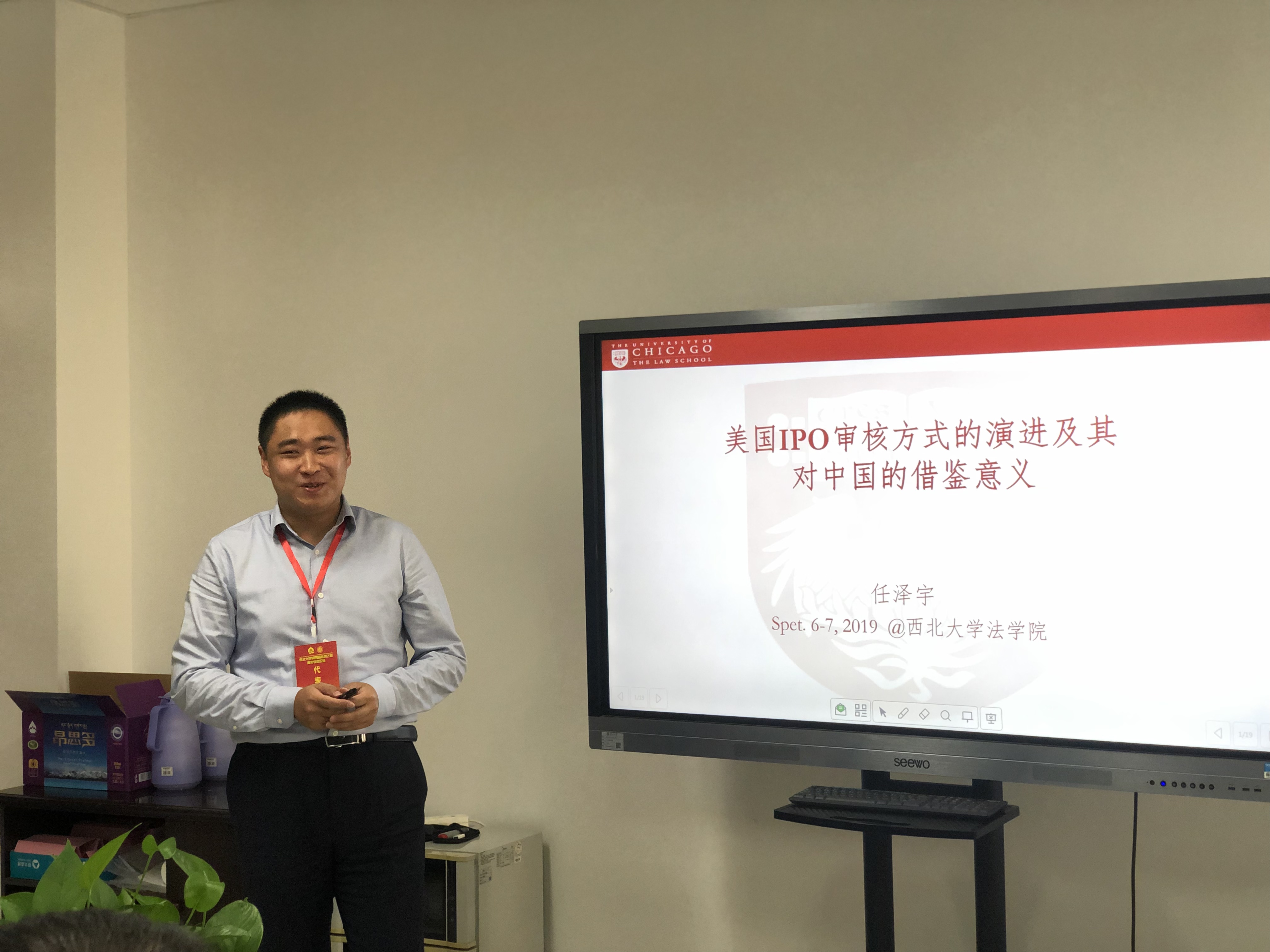 任泽宇博士本科毕业于北京大学光华管理学院金融学专业,硕士和博士就读于美国芝加哥大学242net必赢,主要从事法律经济学、证券发行与注册制等研究。他在会上作了题为《美国IPO审核方式的演进及其对中国的借鉴》学术报告,报告内容丰富,资料详实,受到与会专家的好评。报告结束后,任泽宇博士与在座的学院教师进行了深入沟通和交流,并对学院实验室、资料室等进行了参观。