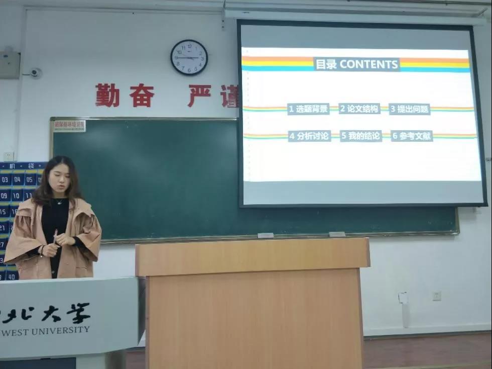 2018年10月15日晚7点,2208教室的学生报告正式开始。同学们向老师汇报了自己研究的学术内容,本场学生报告均结合了时下的社会动态与热点,他们清晰地论述,阐明了自己的观点。