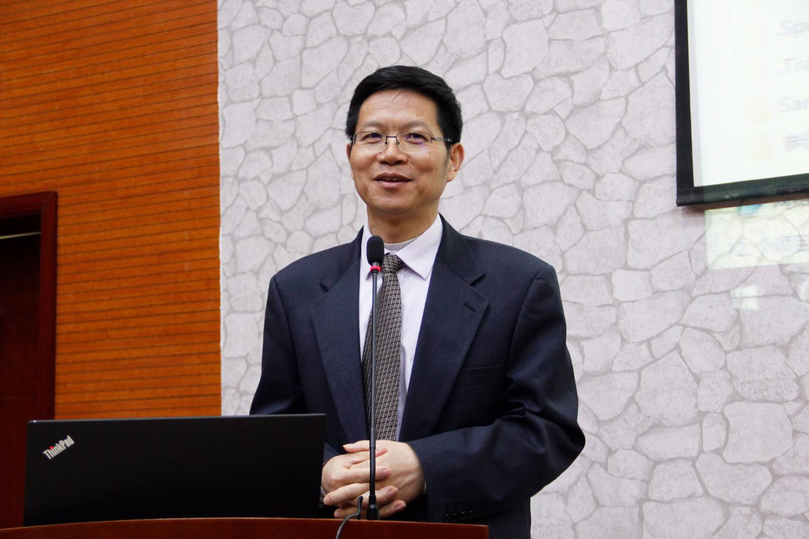 (242net必赢院长王思锋向与会人员介绍施正文教授)