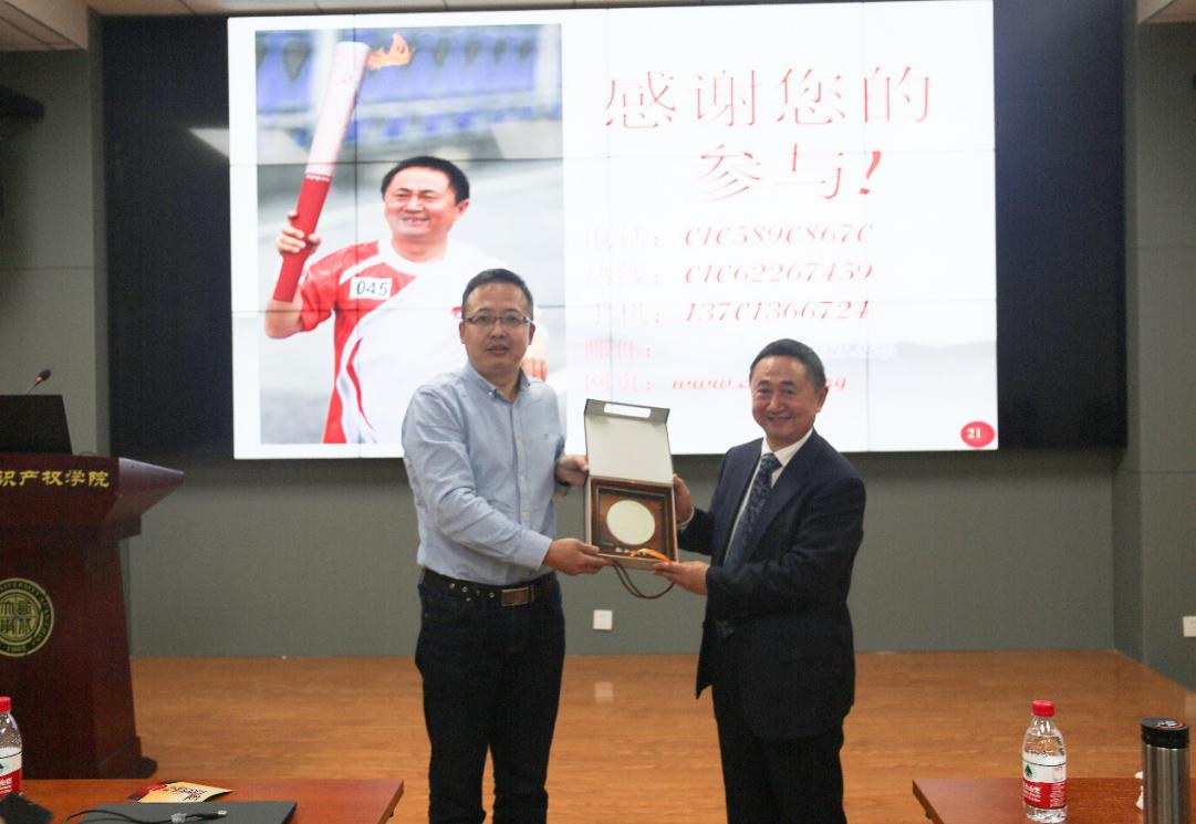 最后,代水平副教授对本次讲座进行了总结。他代表学院非常感谢王灿发教授为学院师生带来了一场非常精彩的学术讲座。他说,王灿发教授在环境法领域深耕了近40年,参与了大量的实践,并长期投身于环境保护的法律援助事业,这种精神值得大家学习。同时代水平副教授希望大家能以开阔的视野分析问题,针对讲座的内容进行后续的检索、研究与吸收。讲座结束后,代水平副院长代表学院给王灿发教授赠送了纪念品。
