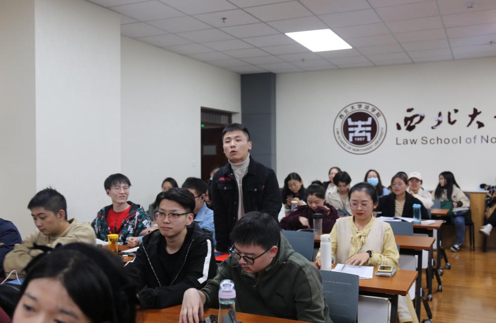 在提问环节,在场师生热情高涨,积极互动。王灿发教授对提出的私权的限制、环境法是否具有阶级性等问题进行耐心地解答。