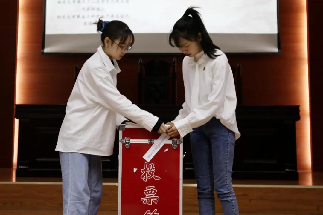 根据预备会议审议通过的《选举办法》,在王晶锌同学的主持下,选举有序进行,与会代表积极参与投票。