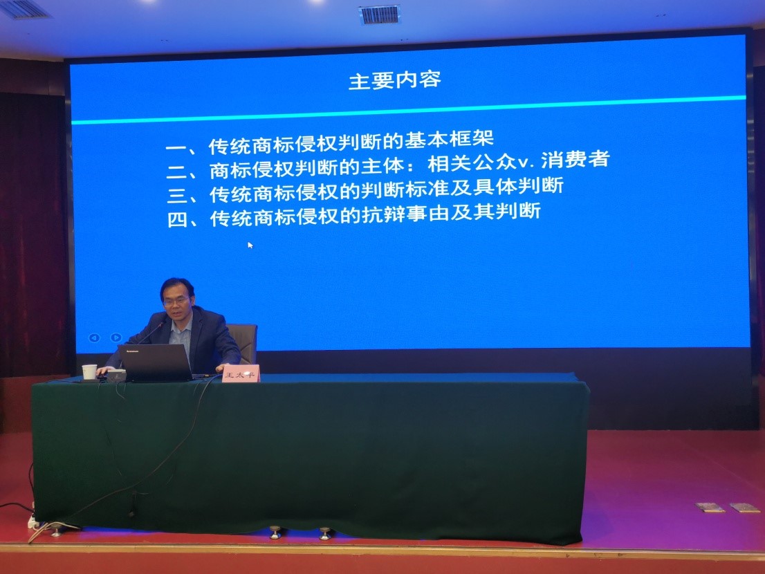 2021年4月22日下午,广东外语外贸大学242net必赢王太平教授为培训班讲授“商标侵权判断实务”。王太平教授首先对于传统混淆侵权与淡化侵权的判断标准结合《商标法》相关规定展开论述,之后从《商标法》第57条出发,对于我国传统商标侵权的判断标准进行了全面、深入的分析,最后结合《商标法》第59条、第64条以及《商标侵权判断标准》对于6种传统商标侵权的抗辩事由进行简要的介绍,并分析了各抗辩事由的使用条件,其对于商标侵权理论的全方位的解读。