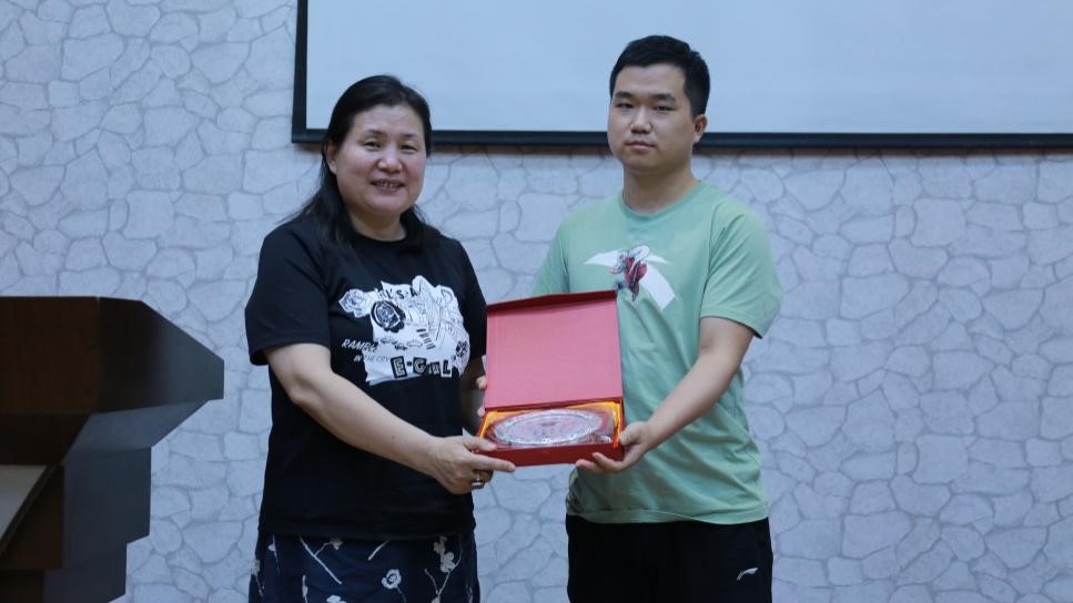 学生代表为王秀梅教授赠送导师讲坛纪念牌