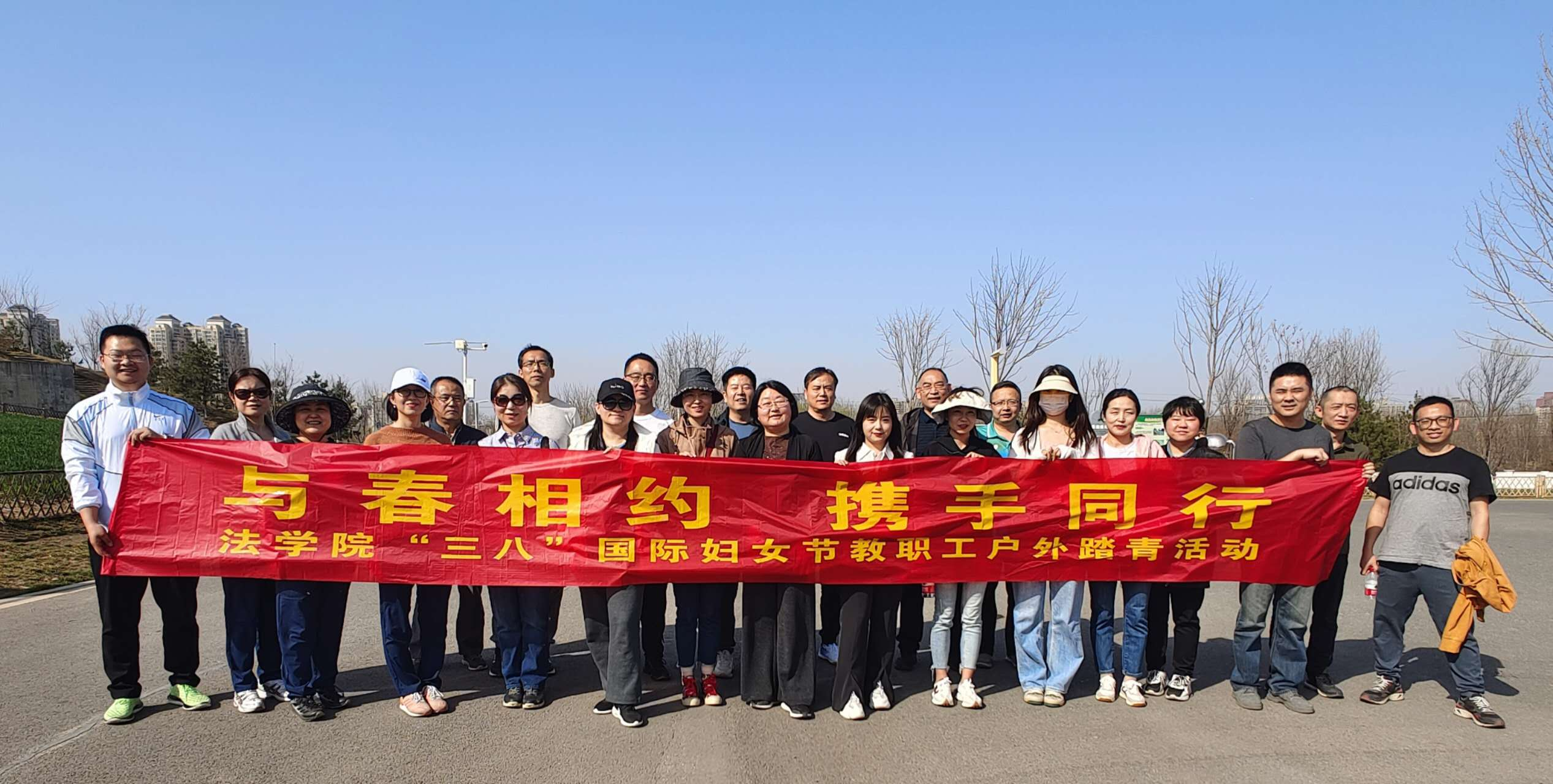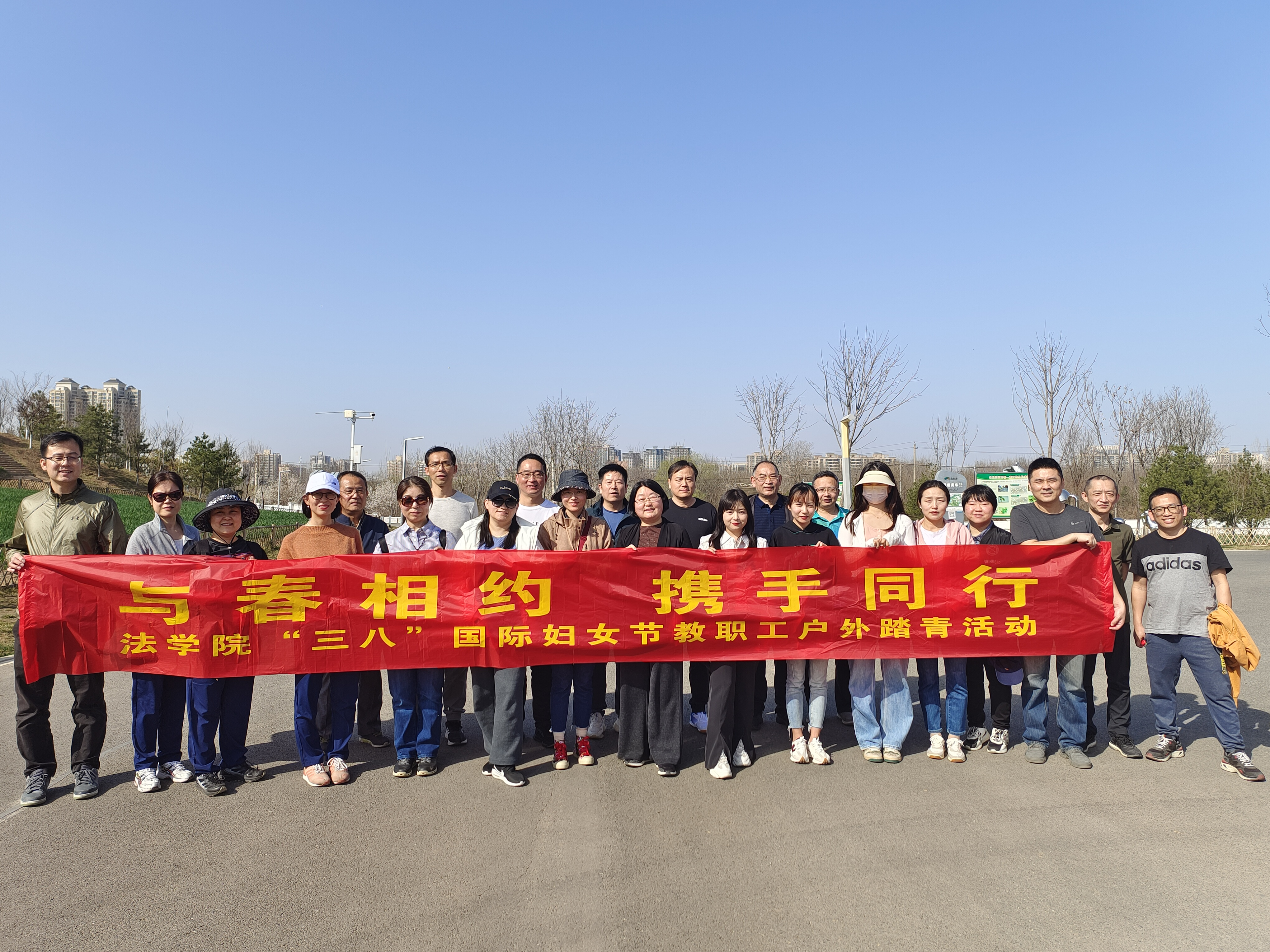 3月8日下午3点,天气晴朗,阳光明媚,空气中弥漫着幸福的气息和春天的味道,我校全院教职工在长安公园蔷薇园集合。首先由李一凡书记作活动前动员发言,李书记表达了对于全院女员工的节日祝福,并鼓励大家多多参与学院工会组织的各式各样活动,在教学科研工作之余,注重身心健康的调整。