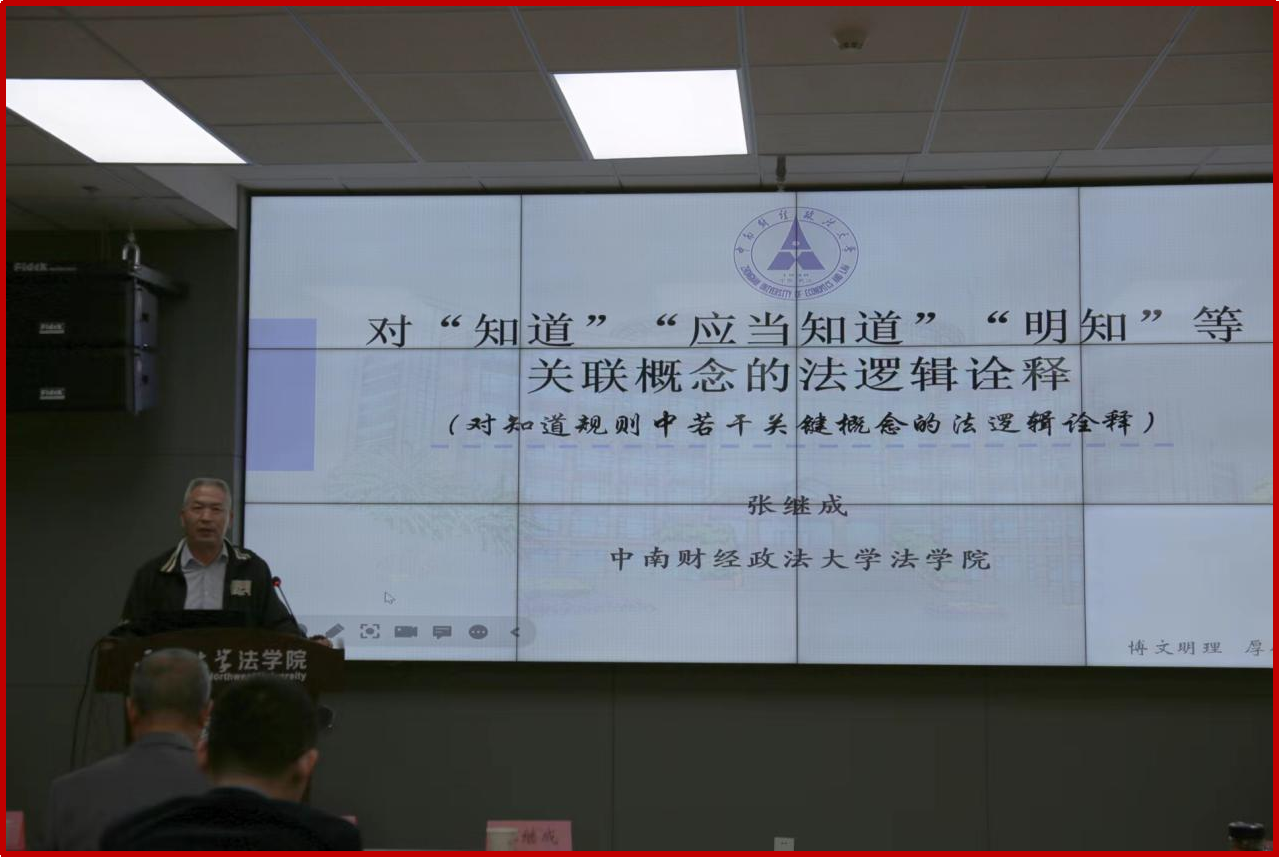 20231013日,中南财经政法大学二级教授、中国法律逻辑学会会长张继成教授受邀做客我院法学前沿论坛,为我院师生带来了题为法律上的知道’‘应当知道’‘明知是什么意思的报告。西安交通大学242net必赢刘东亮教授、北京西安康达律师事务所尚建飞律师学院王鸿貌教授、武建敏教授,青年教师焦琰博士以及学生代表聆听了讲座。讲座由学院代水平副院长主持