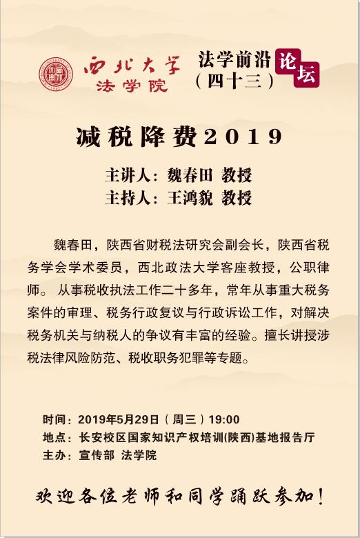 法学前沿论坛(四十三):“减税降费2019”