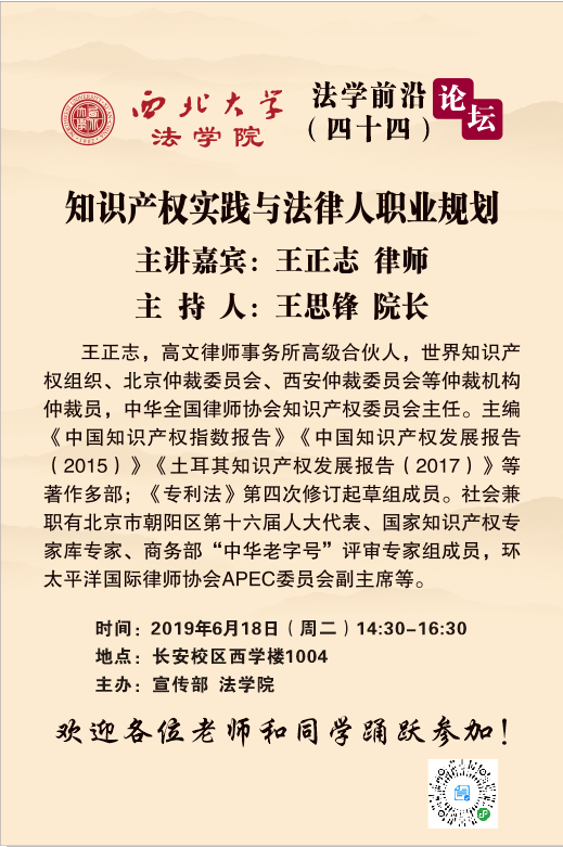 法学前沿论坛(四十四)——知识产权实践与法律人职业规划