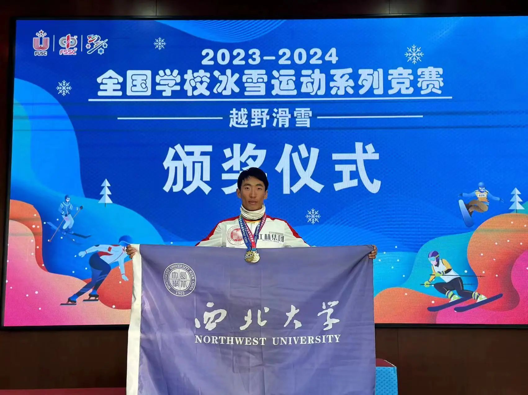 2023年12月31日至2024年1月2日,第 4 届全国大学生越野滑雪锦标赛暨第 32 届世界大学生冬季运动会越野滑雪项目选拔赛在长春市火热开赛。经过激烈角逐,我院健儿在男子丙组(高水平组)2023年12月31日5公里追逐比赛上获得了一金一银,在2024年01月01日的短距离间隔出发项目获得了冠军。