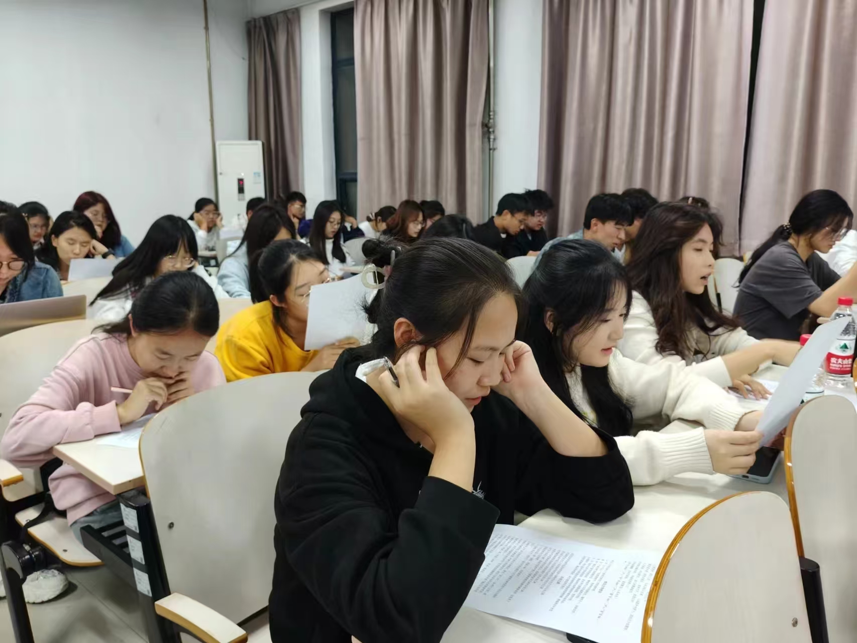 初赛以学生线下速记党史、校训,由负责人提问相关内容的方式展开。同学们拿起笔,庄重地写下自己的名字,然而字易书写,言不尽却是这份深入贯彻党的二十大和二十届三中全会思想、积极投身社会主义建设的信念与承诺。